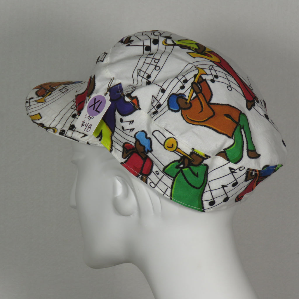 Kabuki taxi cap, music fest print on white. Size extra-large only.
