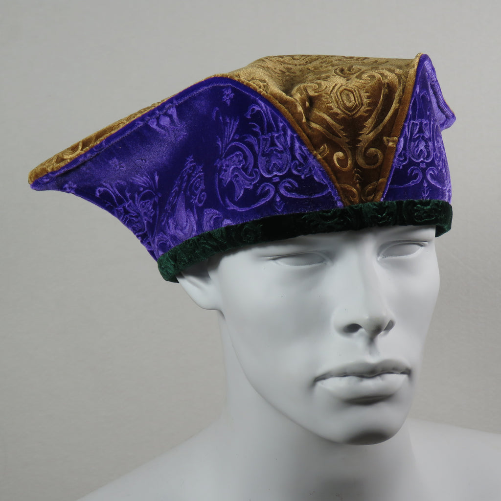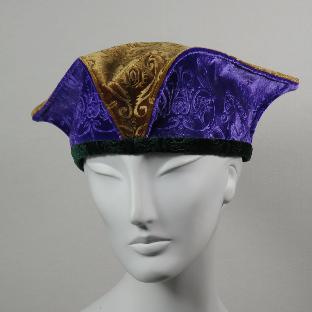 Kabuki Tri Fi, purple, green and gold embossed velvet. Size large only. Designed and hand crafted in the U.S. by Tracy Thomson of Kabuki Design Studio.