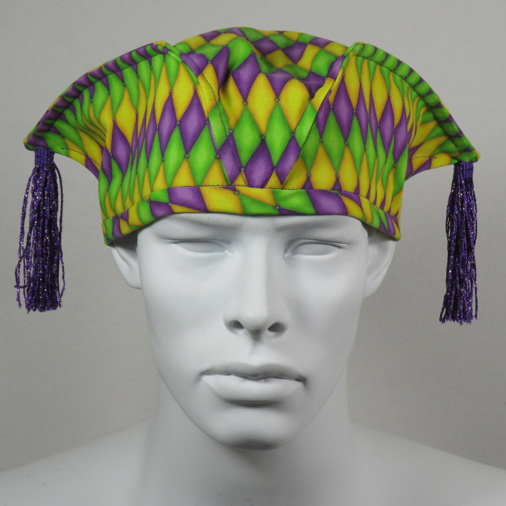 Kabuki Tri Fi, Purple Green and Gold Harlequin Cotton, Tassels, Size Small
